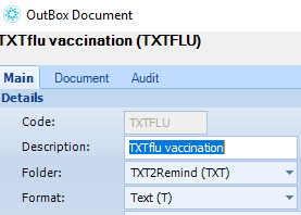 For initial setup, we need to create an outbox document/text template for this. Follow this process here to create an outbox document.