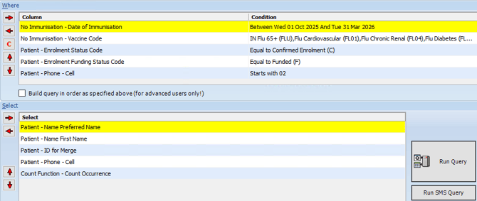 - You can see a example query below - this finds all patients that are currently enrolledandfunded with the clinic, but do not have any flu vaccination recorded in the last 6 months. Adjust the query as needed - you can add an age filter as well if you'd like to filter for patients who are 65 or older.