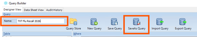 Instructions for using Query builder to send Flu Recalls