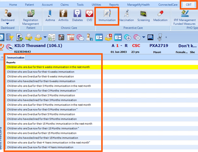 We recommend using the Medtech CBIT reports to identity children who are due/overdue for their immunisations.