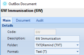 For initial setup, we need to create an outbox document/text template for the immunisation recalls. Follow this process here to create an outbox document. You might consider setting up multiple documents for different age groups within the immunisation schedule to be able to use a more targeted messaging.